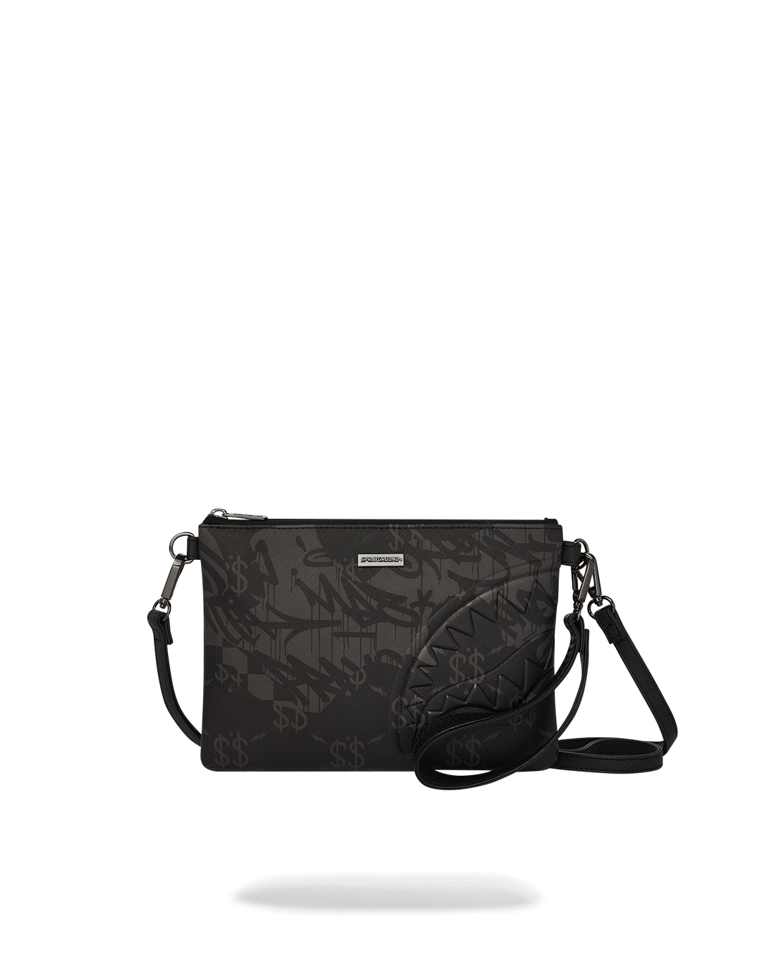 Pouch with removable wristlet strap. Handle on front panel. Zip Closure