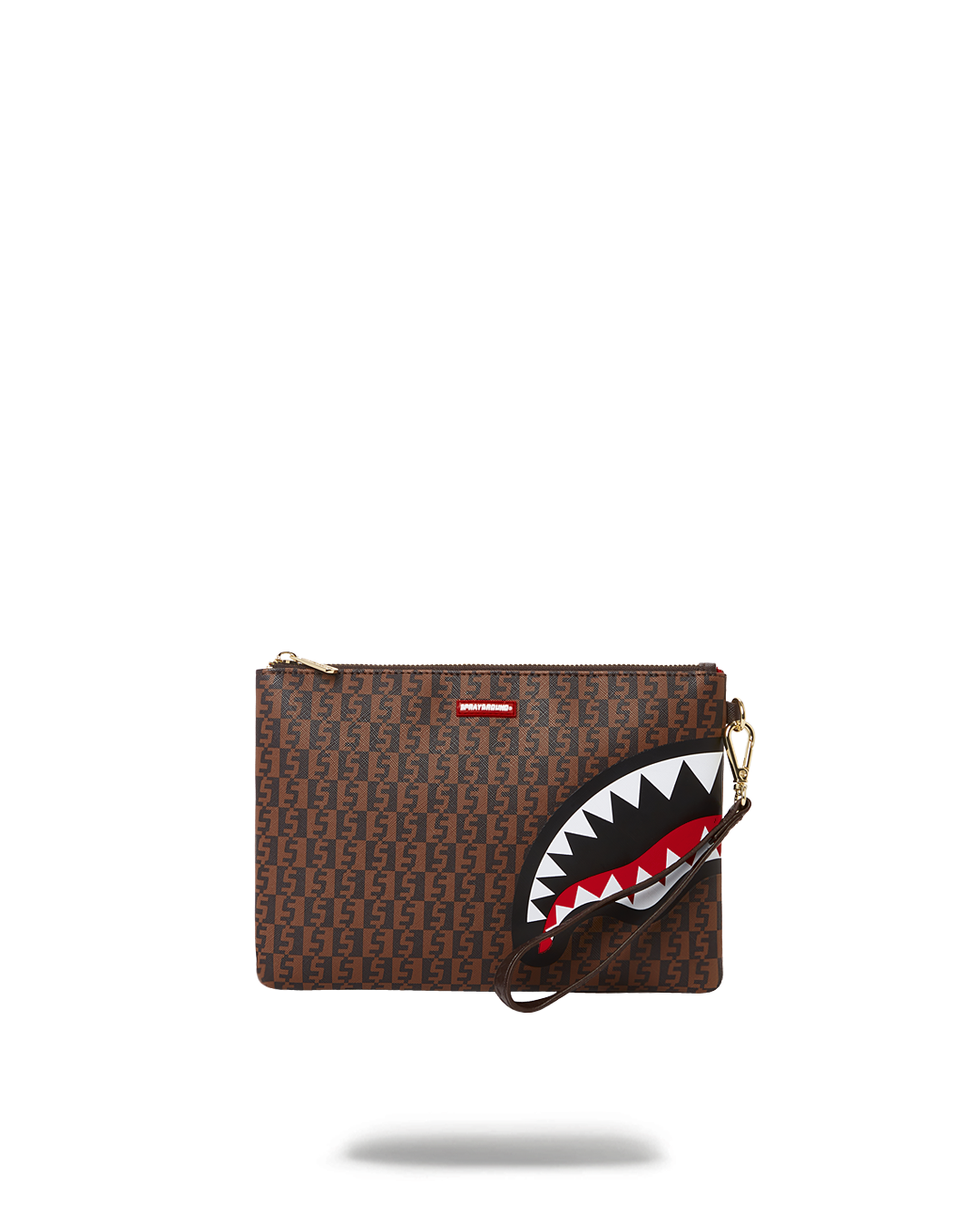 Pouch with removable wristlet strap. Handle on front panel. Zip Closure
