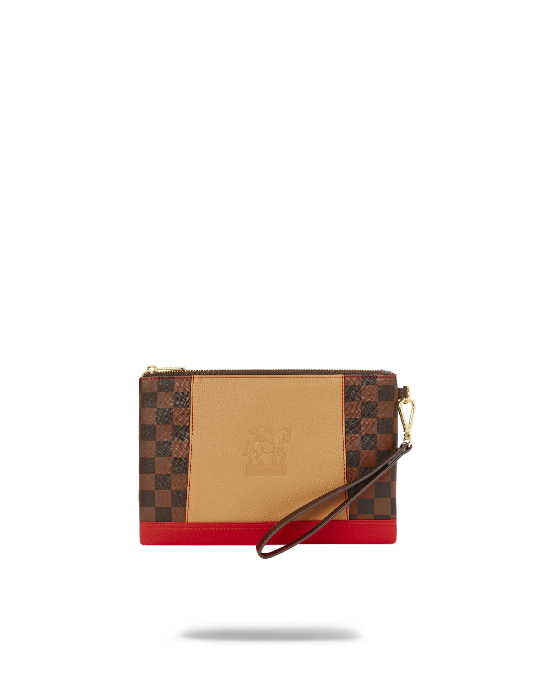 Pouch with removable wristlet strap. Handle on front panel. Zip Closure