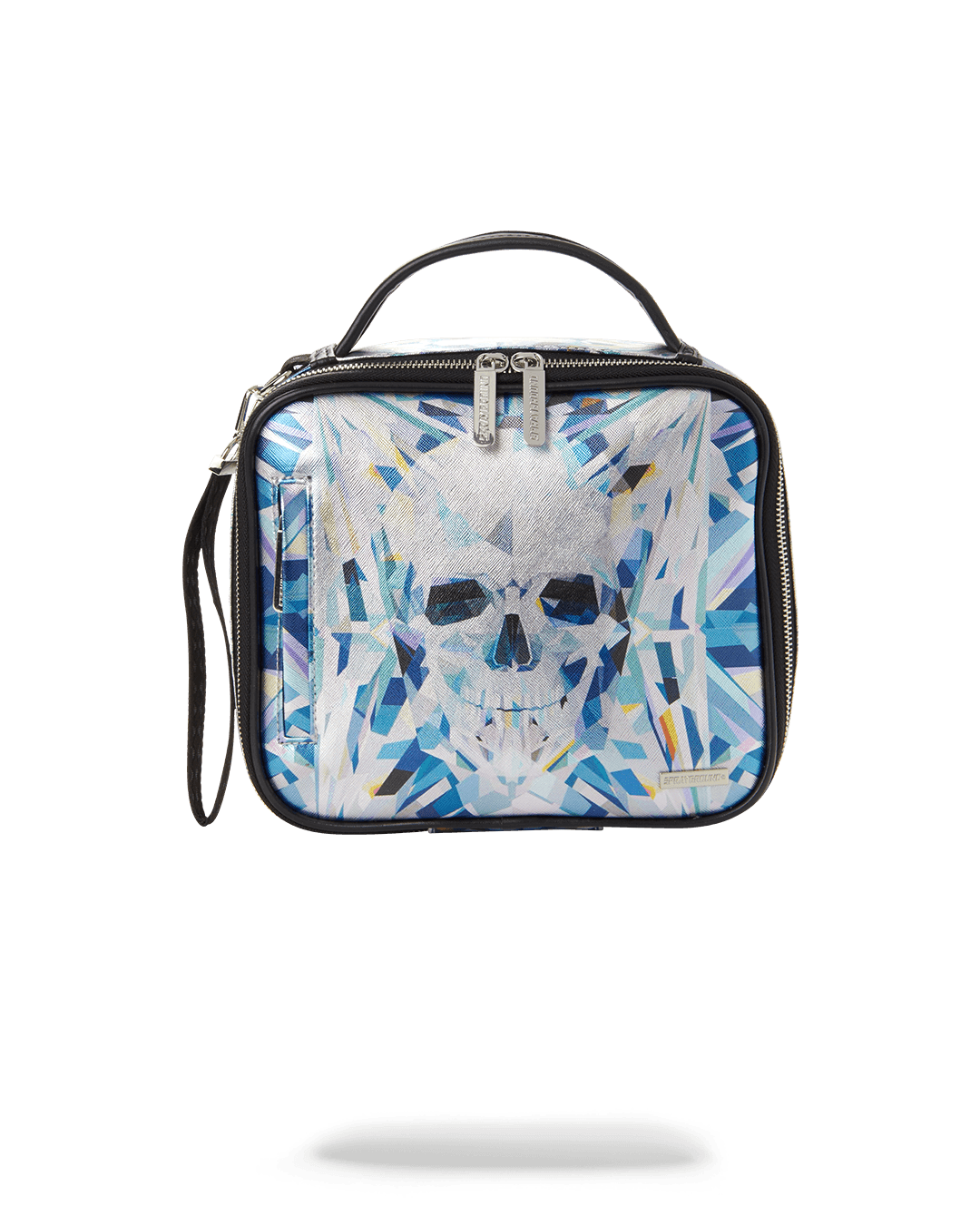 ExteriorDimensions: 8.5" x 3" x 8.5" • Double zipper opening • Top handle • Removeable side handle • Silver zippers with metal hardware • Zippered stash pocket