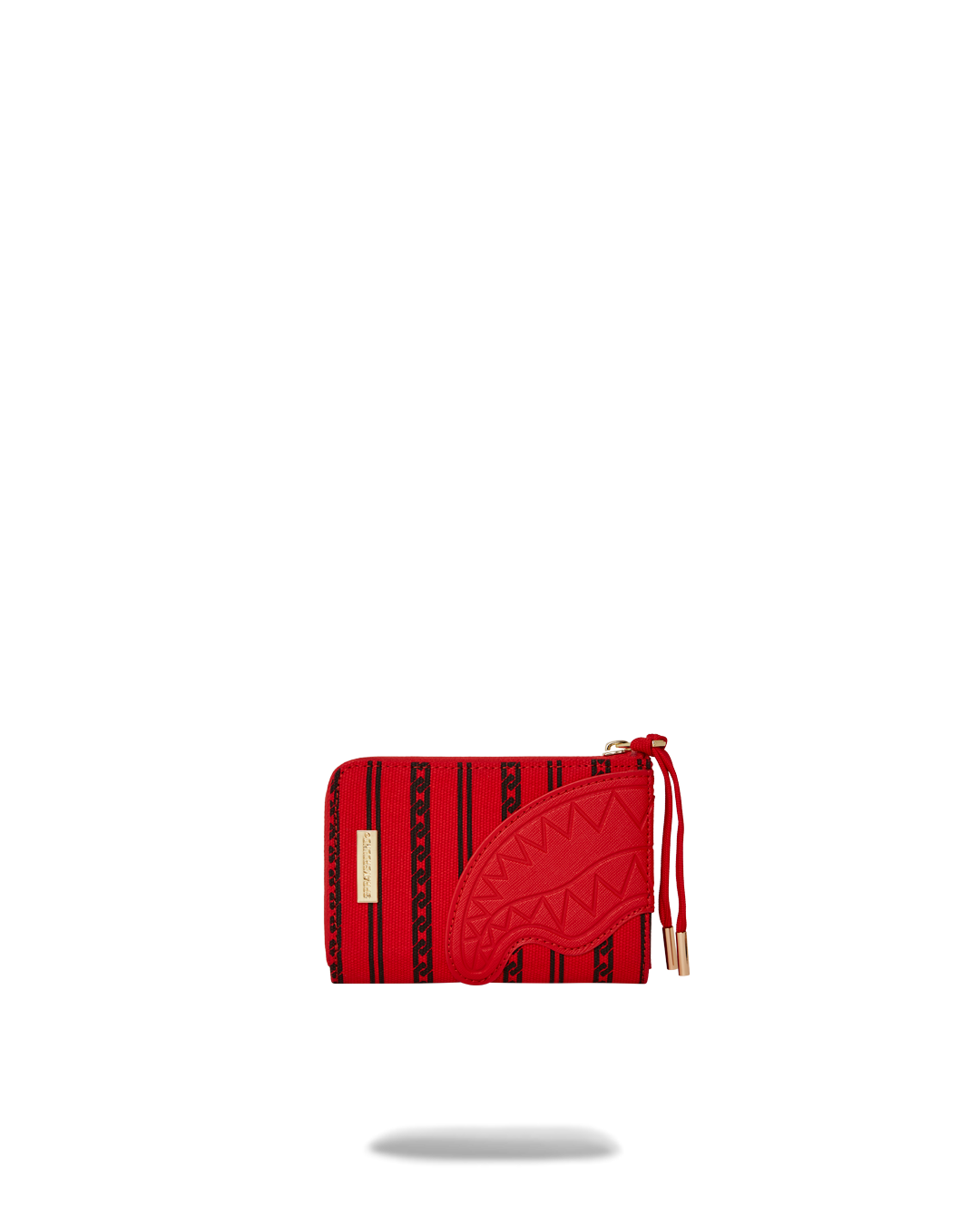new shape. 4.5 W x 3.5 L.  5 card slots. elastic closure. id window. bill slot. pocket details