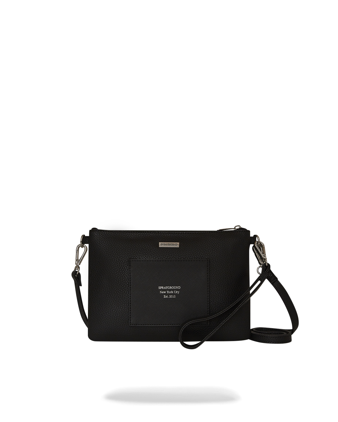 Pouch with removable wristlet strap. Handle on front panel. Zip Closure